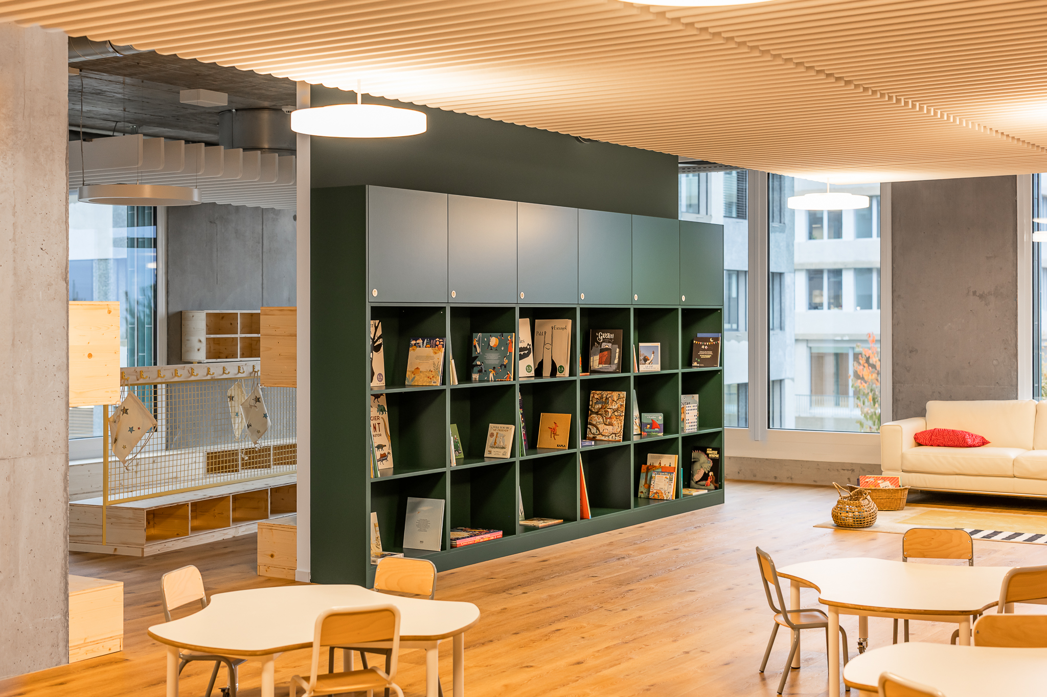 Nous avons eu le plaisir de réaliser les agencements de Ma crèche sous les étoiles, située au Biopôle à Épalinges et ouverte depuis octobre 2025.